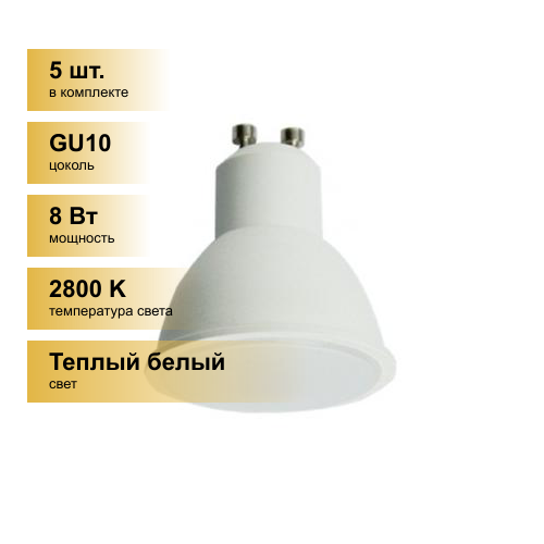 (5 шт.) Светодиодная лампочка Ecola GU10 8W 2800K 2K 57x50 матов. G1LW80ELC