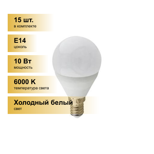 (15 шт.) Светодиодная лампочка Ecola шар G45 E14 10W 6000K 6K 82x45 Premium K4QD10ELC