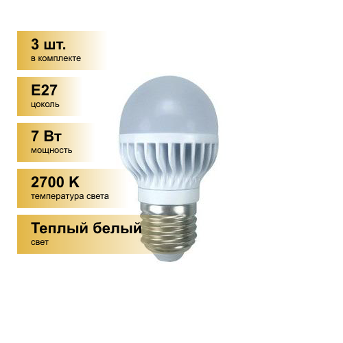 (3 шт.) Светодиодная лампочка Ecola ЛОН A50 E27 7W 2700K 2K 360гр. 92x50 Premium 2K K7SW70ELB