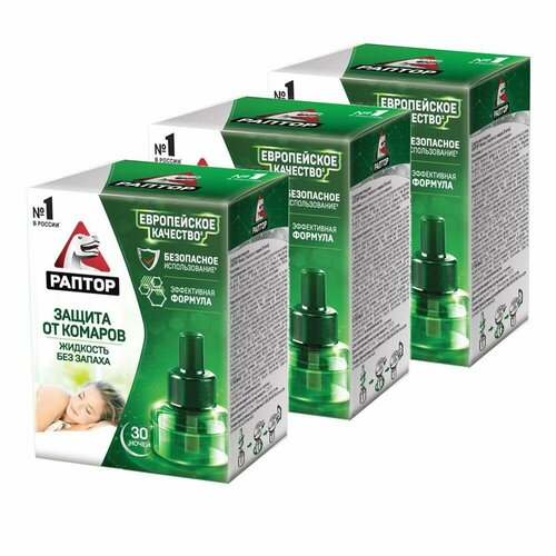Раптор Жидкость от комаров 30 ночей в наборе 3шт