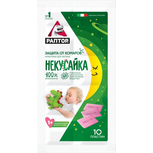 Пластины от комаров для детей Раптор Некусайка с экстрактом ромашки 10 шт.