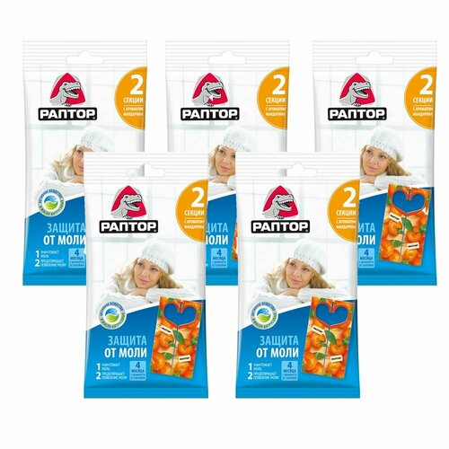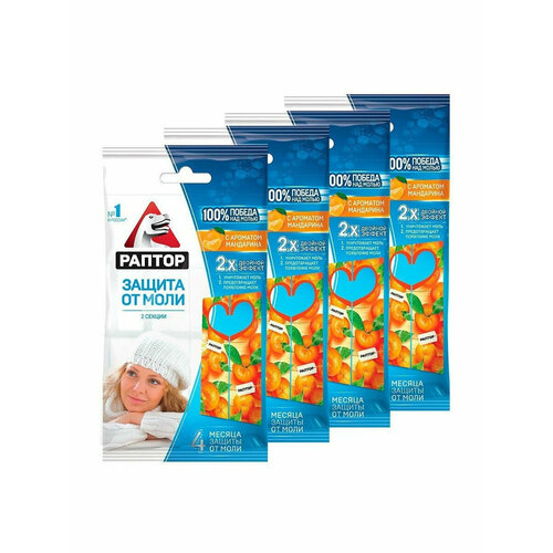 Раптор Секция от моли с запахом мандарина (картонная подвеска) 2 штуки NEW 2019 в наборе 5шт