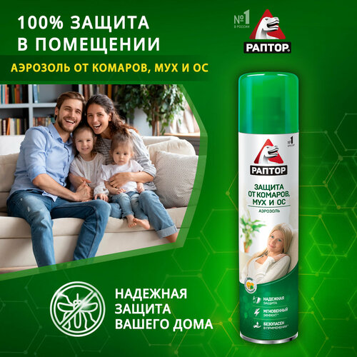 Аэрозоль от летающих насекомых, РАПТОР, Средство от комаров, от мух, от ос, 275 мл