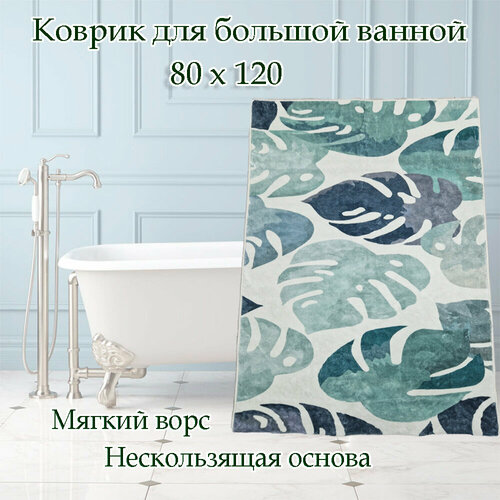 Коврик для большой ванной и туалета 120x80 нескользящий листья