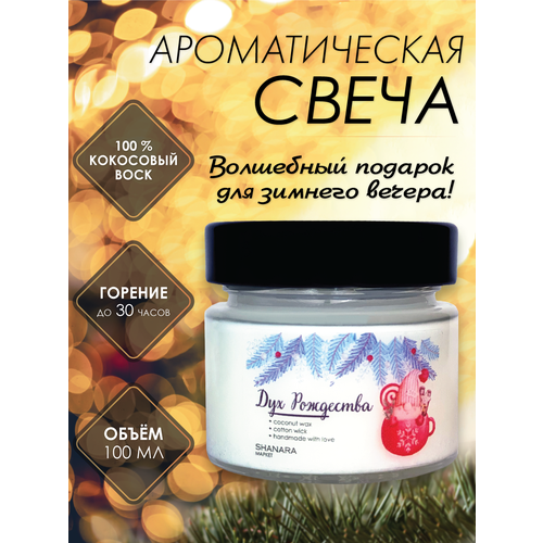 Ароматическая свеча для дома, аромат "Дух Рождества" из кокосового воска в стекле 100 мл, хлопковый фетиль, декоративные свечи для дома, идеальный подарок на праздник