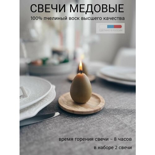 Свеча медовая "Яйцо" из натурального пчелиного воска, 2 шт