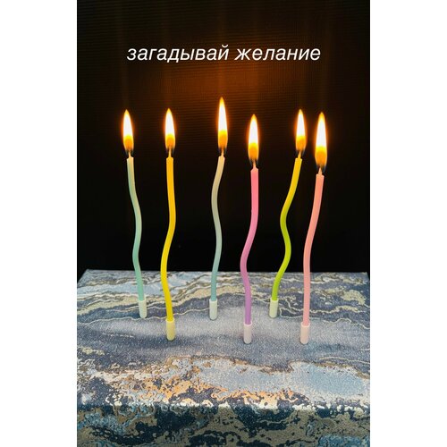 Свечи тонкие спирали высокие для торта волнистые разноцветные на торт 6 штук