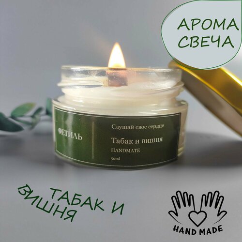 Ароматическая свеча из кокосового воска со вкусом "Табак и вишня" 50 мл