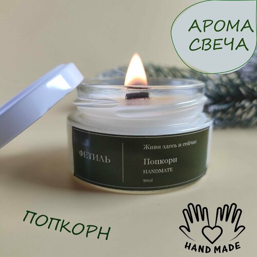 Ароматическая свеча из кокосового воска с деревянным фитилем "Попкорн" 50 мл