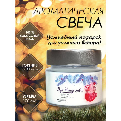 Ароматическая свеча для дома, аромат "Дух Рождества" из кокосового воска в стекле 100 мл, хлопковый фетиль, декоративные свечи для дома