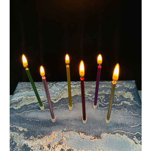 Свечи тонкие прямые высокие для торта высокие разноцветные на торт 6 штук разноцветные