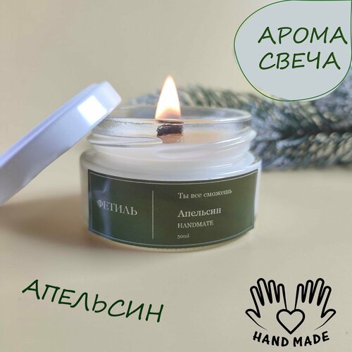 Ароматическая свеча из кокосового воска с деревянным фитилем "Апельсин" 50мл
