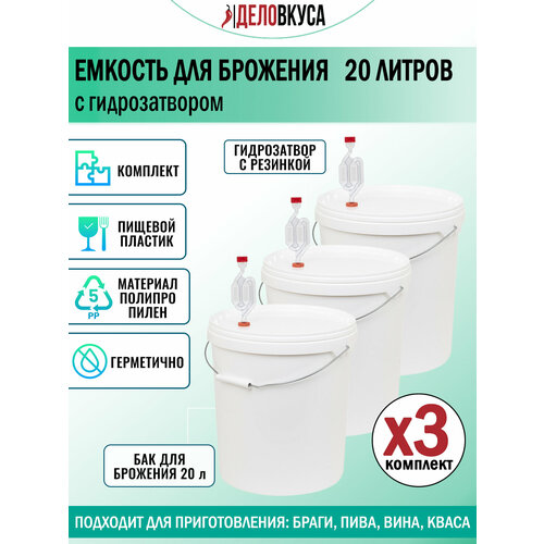 Емкость для брожения с гидрозатвором, 20 литров. Комплект 3 шт.