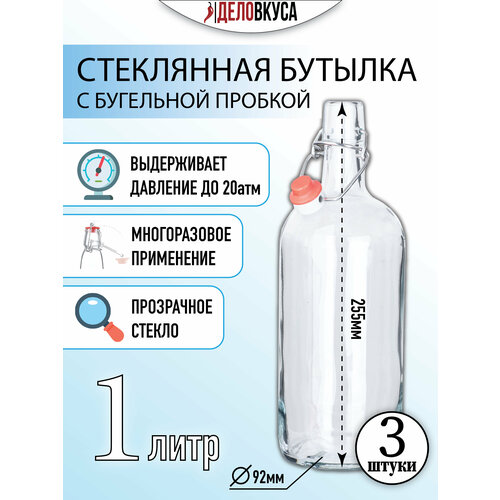 Бутылка с бугельной пробкой, 1 л, прозрачная. Комплект 3 шт.