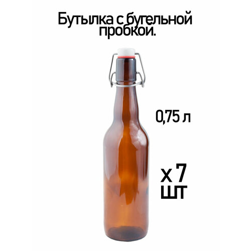 Бутылка с бугельной пробкой, 0.75 л, коричневая. Комплект 7 шт.
