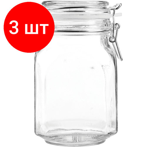 Комплект 3 штук, Банка круглая с крышкой; стекло, силикон;0.8л, H=16см; прозр