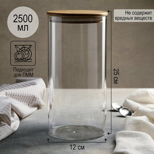 Банка стеклянная для сыпучих продуктов с бамбуковой крышкой, 1 л, 9,5×18 см