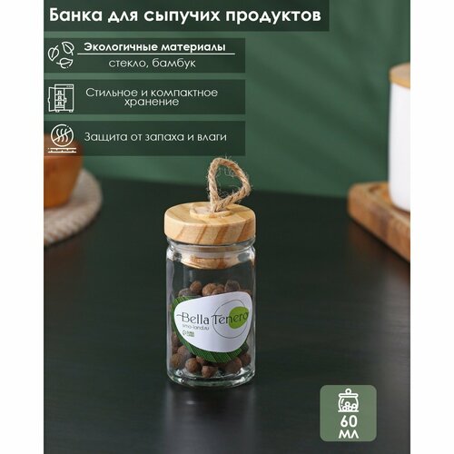 Баночка стеклянная для специй с бамбуковой крышкой BellaTenero «Эко», 60 мл, 4,4×8,5 см