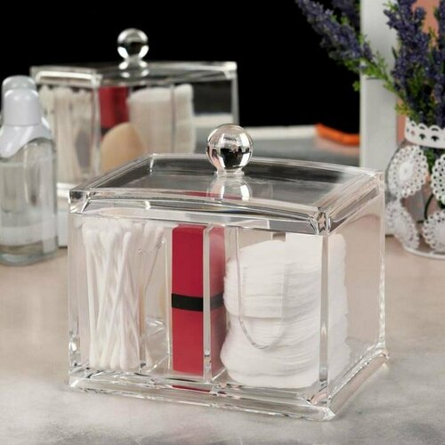 Органайзер для хранения ватных палочек и дисков, 4 секции, 13 × 14 × 11 см, цвет прозрачный (комплект из 2 шт)