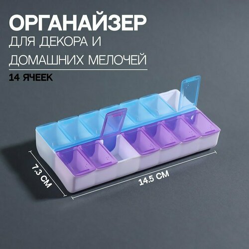 Органайзер для декора, 14 ячеек, 14,5 × 7,3 × 2,5 см, цвет голубой/фиолетовый (комплект из 10 шт)