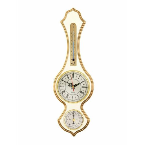Часы-погодная станция бриг КМ92102-ЧТ-ЭП Часы настенные для дома в деревянном корпусе, цвет слоновая кость с позолотой с термометром.