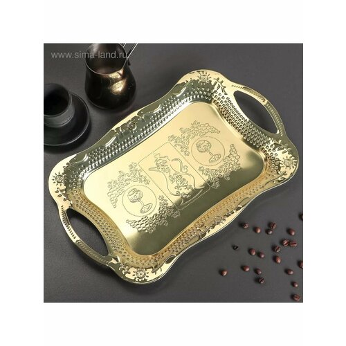 Поднос сервировочный «Солон», 34×24,5×9 см, с ручками, цвет серебряный
