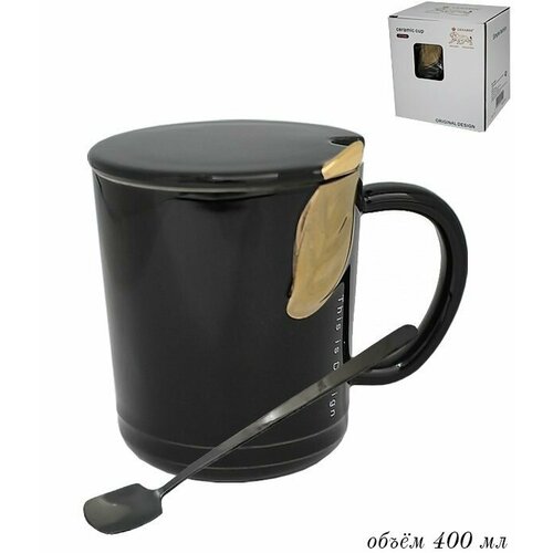 Кружка 400 мл с крышкой и ложкой в подарочной упаковке 106-095 118-106-095
