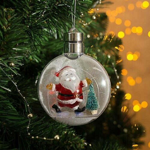Ёлочный шар Дед Мороз, батарейки, 5 LED, свечение тeплое белое