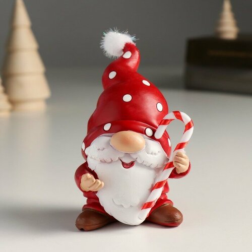 Сувенир полистоун Дед Мороз в красном колпаке в белый горох, с леденцом 6х6,5х10 см