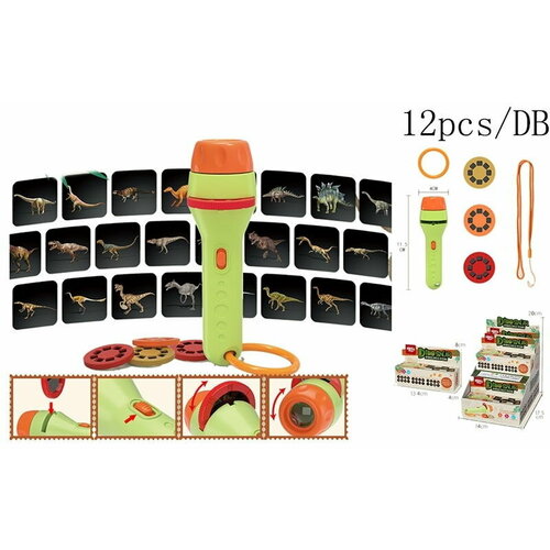 Проектор на шнурке, салатовый с оранжевым, свет, батарейки входят в комплект (в коробке) (блок 12 штук)