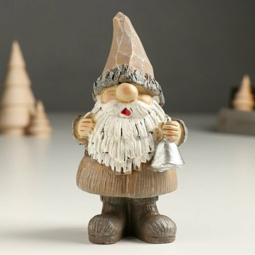 Сувенир полистоун "Дед Мороз в серо-бежевом наряде, с колокольчиком" 5,5х6,5х13 см