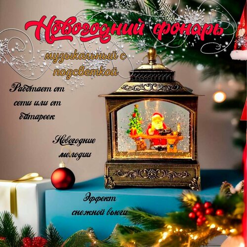 Новогодний фонарь музыкальный с подсветкой со снегом Новогоднее украшение Декоративный светильник 27 см