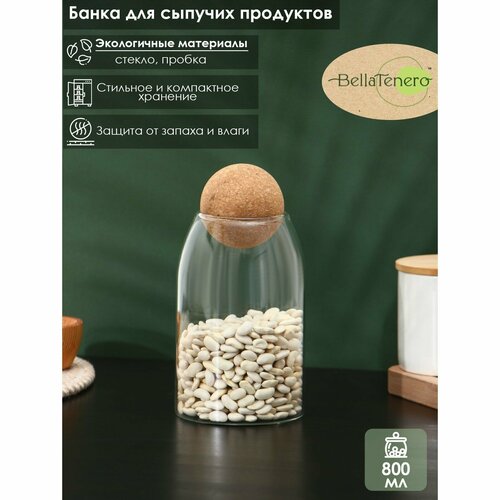 Банка стеклянная для сыпучих продуктов с пробковой крышкой BellaTenero «Эко. Шар», 800 мл, 9×18,5 см