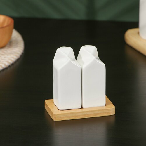 Набор фарфоровый для специй на деревянной подставке, 2 предмета: солонка, перечница
