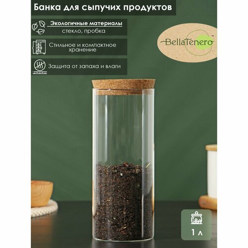 Банка стеклянная для сыпучих продуктов с пробковой крышкой BellaTenero «Классика», 1 л, 8,5×21 см