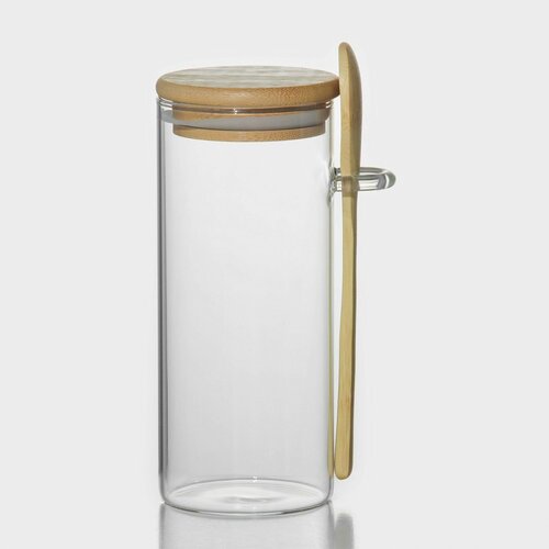 Банка стеклянная для сыпучих продуктов с бамбуковой крышкой и ложкой BellaTenero «Эко», 420 мл, 8,3×6,7×15,5 см