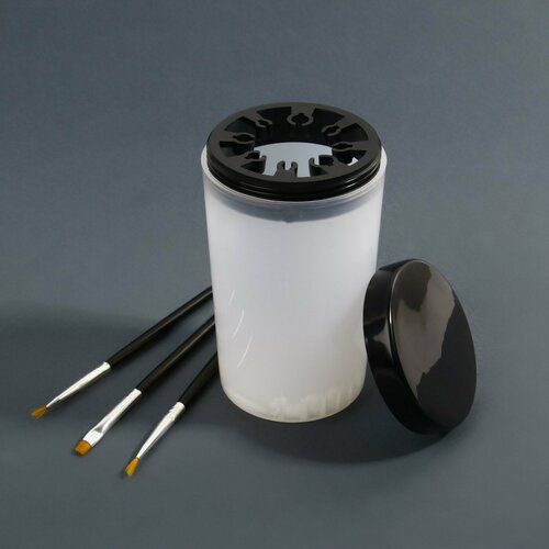 Ёмкость для очистки и хранения кистей, с держателями и крышкой, 200 мл, цвет прозрачный/чёрный