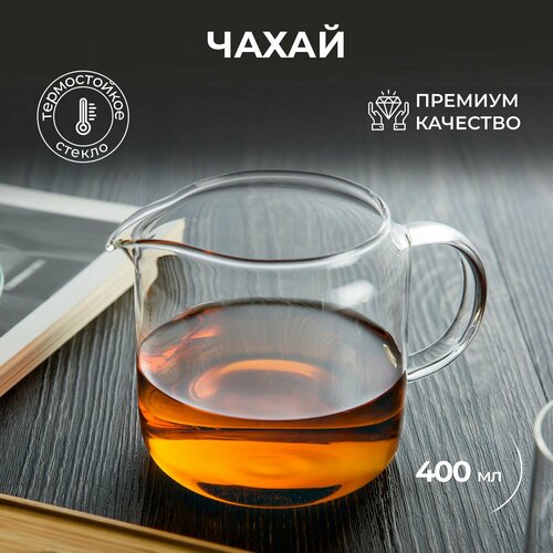 Прозрачный стеклянный чайный сливник с ручкой 400 мл SAMADOYO, Сливник для чая (чахай), Стеклянная посуда для чайной церемонии