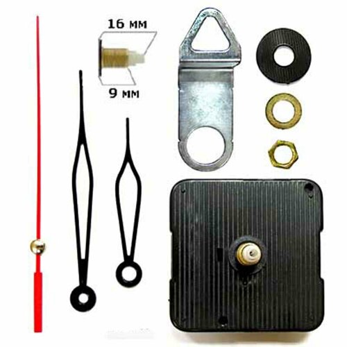 Часовой механизм для настенных часов и календарей M-1602 бесшумный плавный ход, со стрелками, шток 16 мм, цена за 1 шт.