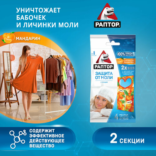 Подвеска от моли Раптор с запахом мандарина, 2 секции 1 упаковка