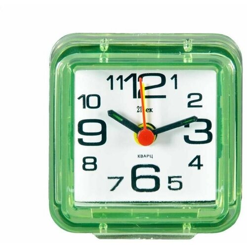 Часы настольные - будильник 21 Век В1-003, зеленые, кварцевые, квадратные, 1 шт.