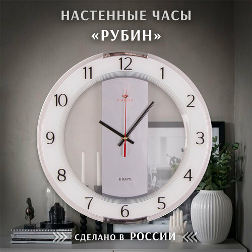 Настенные часы Рубин прозрачный корпус с белой вставкой диаметр 34 см