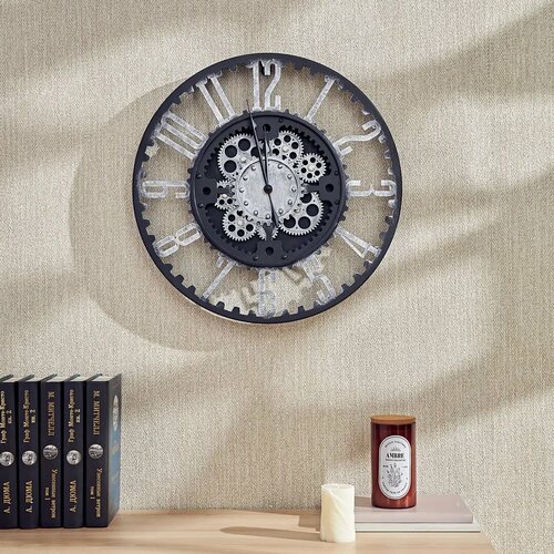Часы настенные Dream River Шестеренки GH61159 круглые металл цвет черный бесшумные 40