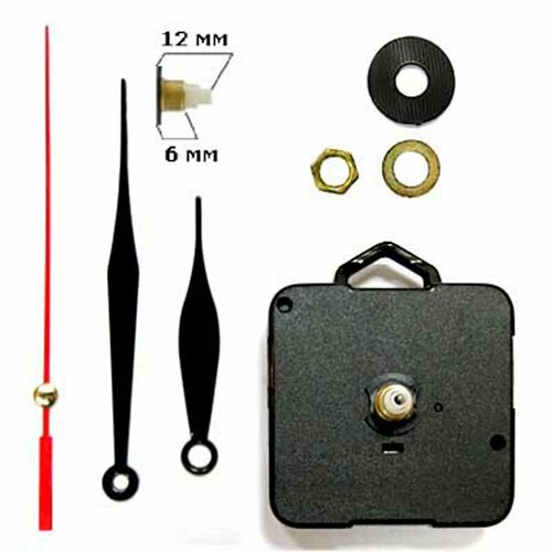 Часовой механизм для настенных часов и календарей M-1222 бесшумный плавный ход, со стрелками, шток 12 мм, цена за 1 шт.