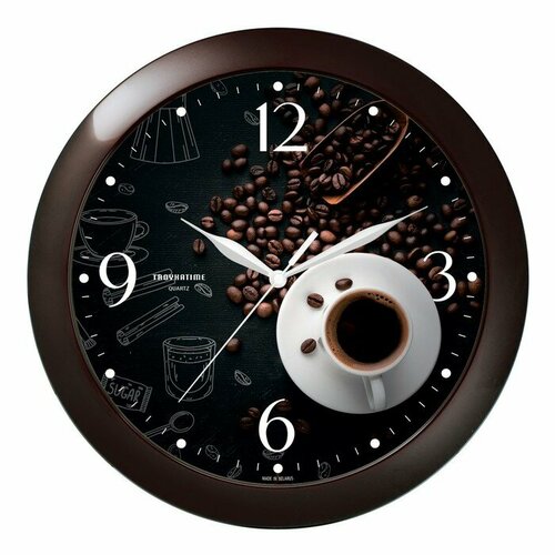 Часы настенные, серия: Интерьер, "Чашка кофе", плавный ход, d-29 см, коричневый 9685703