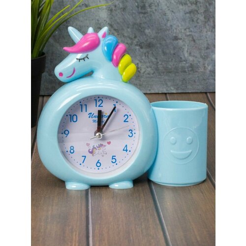 Часы настольные с будильником и подставкой для канцелярии Rainbow unicorn blue