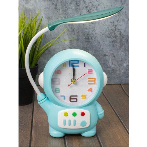 Часы настольные с будильником и светильником Cheerful cosmonaut blue