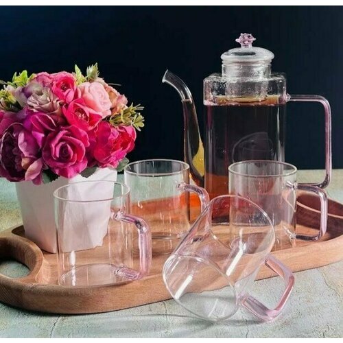 Чайник заварочный 1000мл и 4 стакана 200мл в под. уп. Стекло 139-065 118-139-065