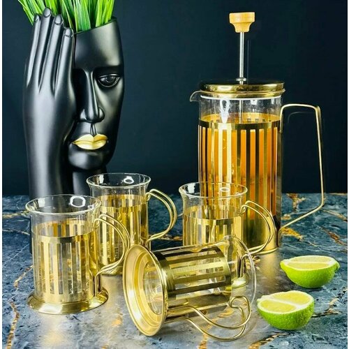 Френч-пресс и 4 стакана стекло, 1000мл 200мл Lenardi