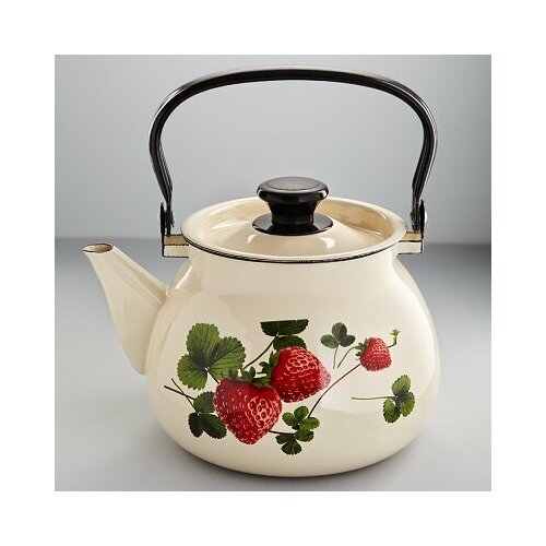 Чайник эмалированный 2 л "Вишневый сад" белый Керченская эмаль